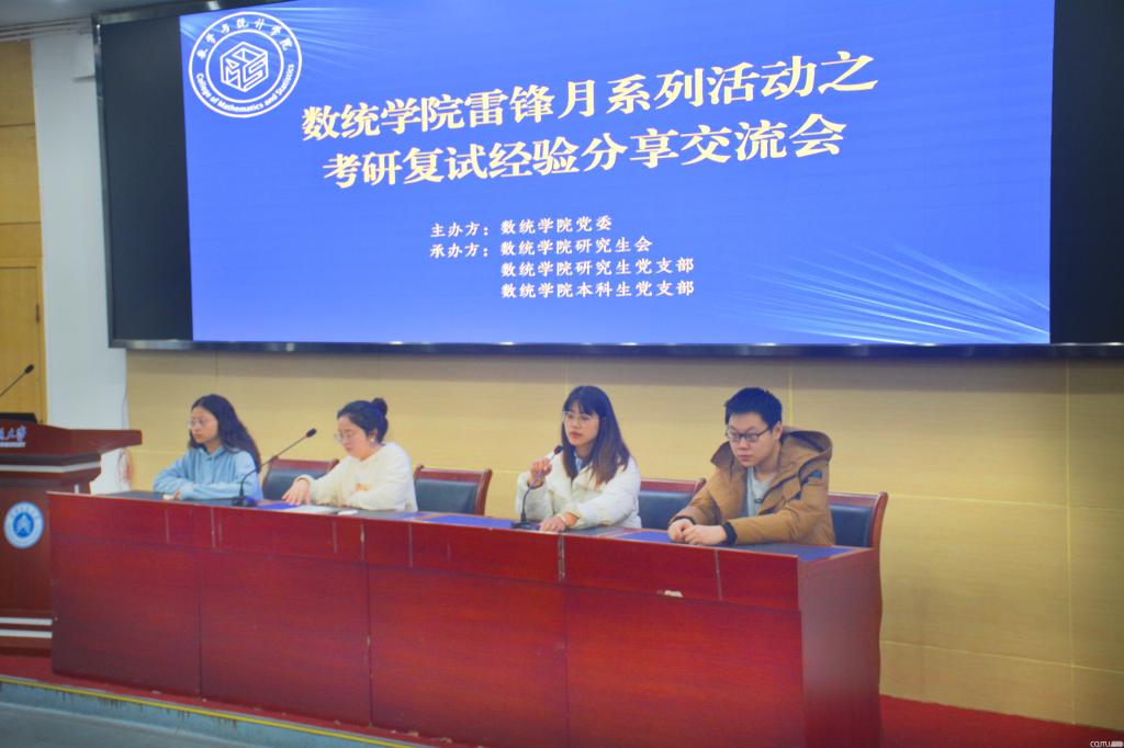 在现场交流环节,与会同学从复试教材准备、专业知识复习、复试资格确认等方面向学长学姐提问,四位研究生作了细致的回答,研究生侯仟、张艳就考研调剂问题同大家展开了深入的讨论与交流。