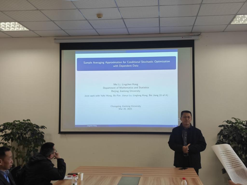 孔令臣教授以“Sample Average Approximation for Conditional Stochastic Optimization with Dependent Data”为题,深入探讨了依赖数据条件下条件随机优化的样本平均近似方法。他系统阐述了该理论在时间序列分析、强化学习等场景中的应用潜力,并展示了团队在样本复杂度与有限样本保证方面的最新研究成果。