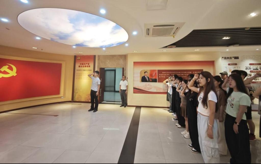 参观结束后,在庄严肃穆的氛围中,全体毕业生党员面向鲜红的中国共产党党旗,在曾钰超同志的领誓下,郑重举起右拳,重温入党誓词。铿锵有力的誓言在展厅内激昂回荡,字字千钧,饱含着对党的无限忠诚和为共产主义事业奋斗终身的坚定信念。