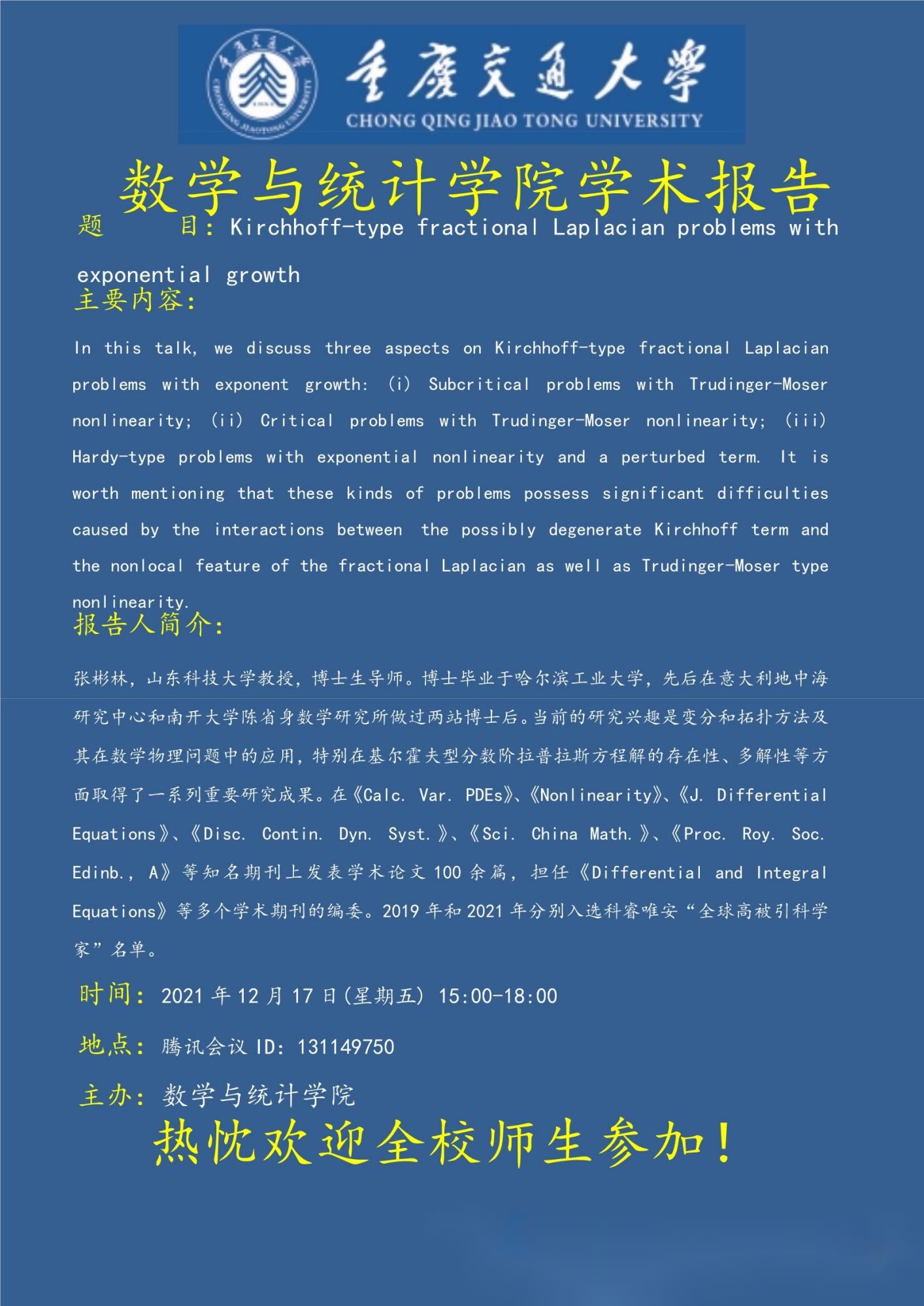 学术报告:Kirchhoff-type fractional Laplacian problems with exponential growth