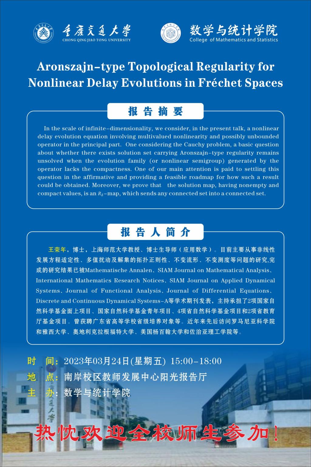 学术报告:Aronszajn-type Topological Regularity for Nonlinear Delay Evolutions in Frechet Spaces
