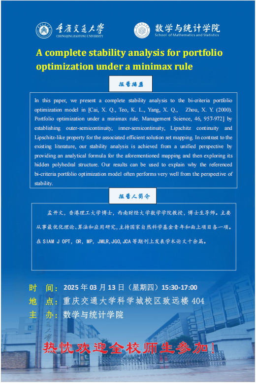 学术报告:A complete stability analysis for portfolio optimization under a minimax rule