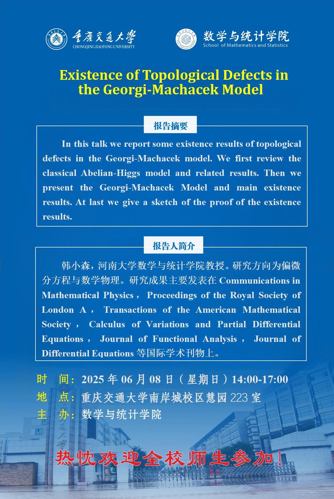 学术报告:Existence of Topological Defects in the Georgi-Machacek Model