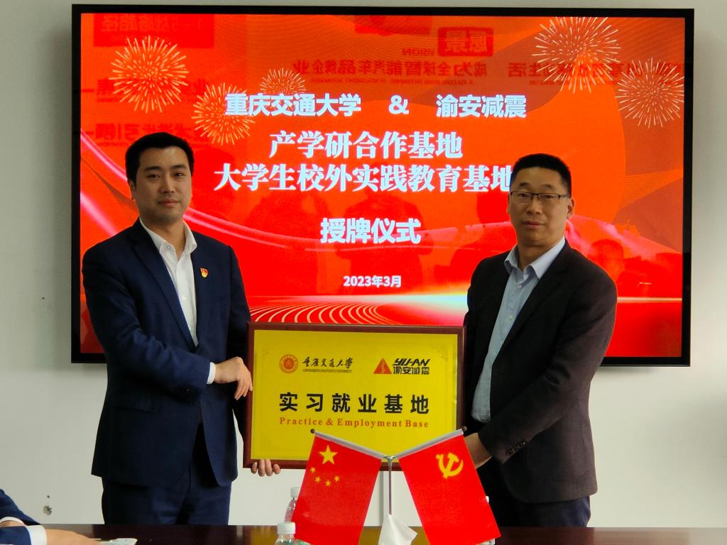 2023年3月16日下午,“sunbet申搏sunbet—重庆渝安减震器有限公司”老员工校外实践教育基地揭牌仪式在重庆渝安减震器有限公司(以下简称渝安减震器)举行。渝安减震器总经理曾兴华、人力资源总监葛德仁、营销总监屈君鹏、技术总监刘锦亮、技术部部长沈飞、制造部部长助理蒋艳红、HRBP白洁,在渝安减震器工作的员工代表,sunbet申搏公司党委书记王祥林、经理王其林、党委副书记马在亮、办公室主任罗二鹏、辅导员周琴及公司2019级部分员工出席了揭牌仪式。