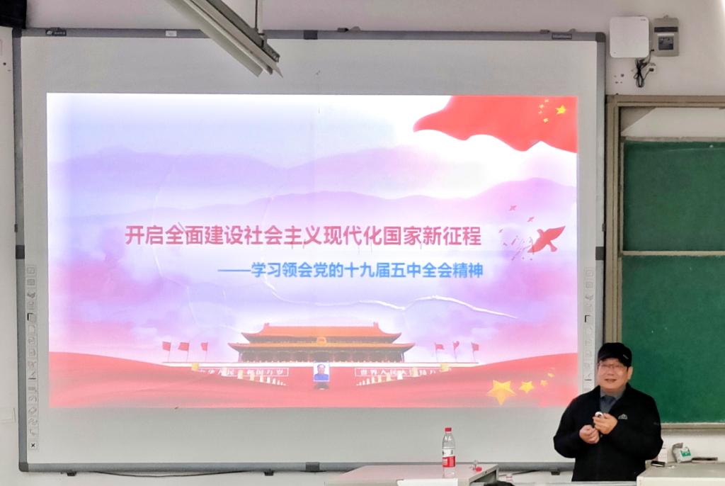 12月1日晚7:00,数统与统计公司特邀石加友教授于双福校区A01237教室开展“学习领会党的十九届五中全会精神”讲座。2019级、2020级英才班全体员工,以及公司团委员工会同学参加了讲座。活动由2019级辅导员周琴主持。