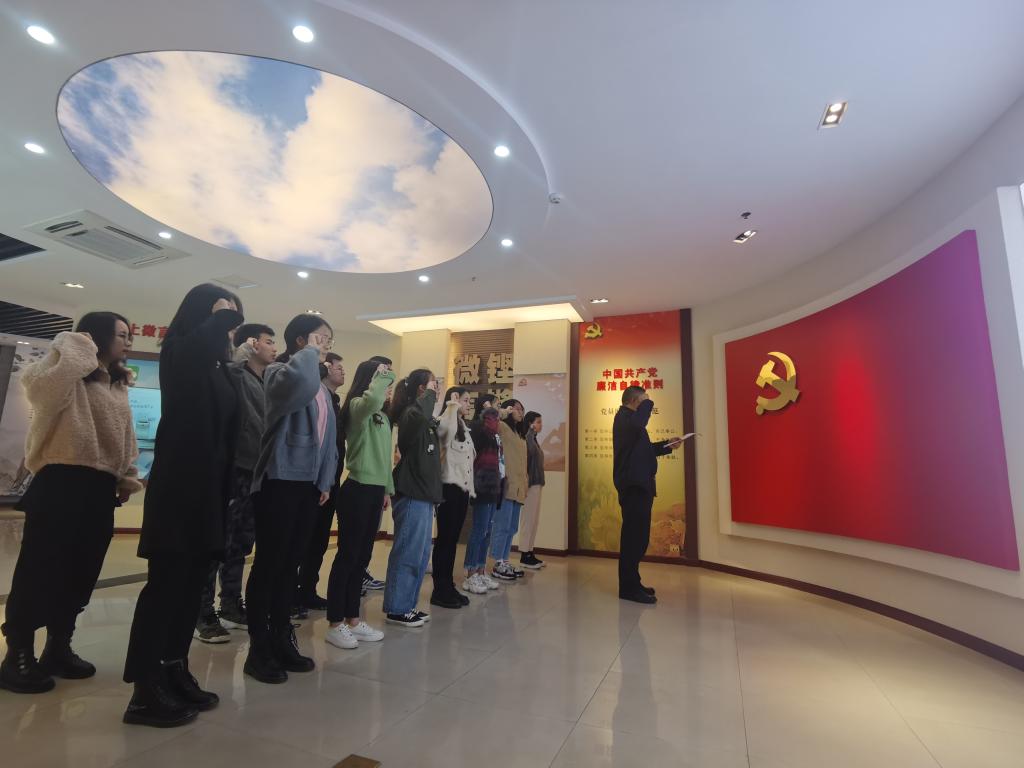 据悉,活动当天,孟老师还带领员工党员们在校图书馆二楼“公司廉政教育中心”进行参观学习,并为近期发展的新党员举行了入党宣誓仪式。入党宣誓仪式是庄严神圣的时刻,是增强党员身份意识和进行入党教育的重要环节,在孟老师的领誓下,公司全体预备党员进行了入党宣誓,一百多字的誓词是他们入党后对党的第一个承诺。