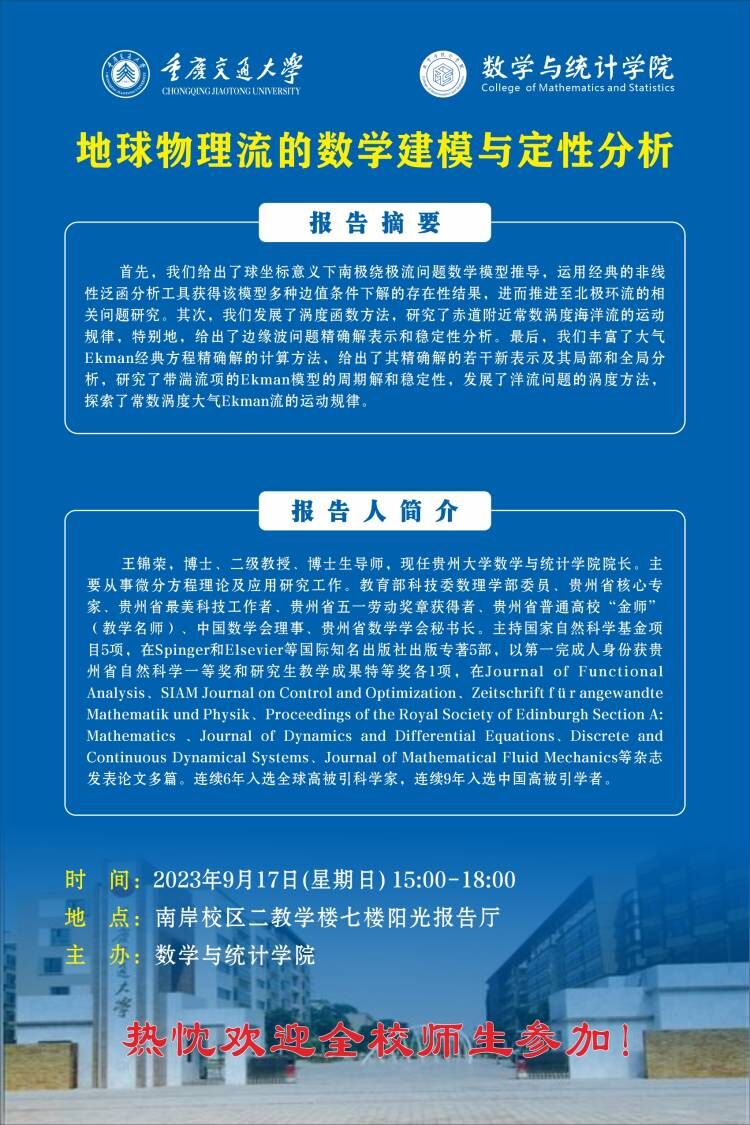 学术报告:地球物理流的数学建模与定性分析