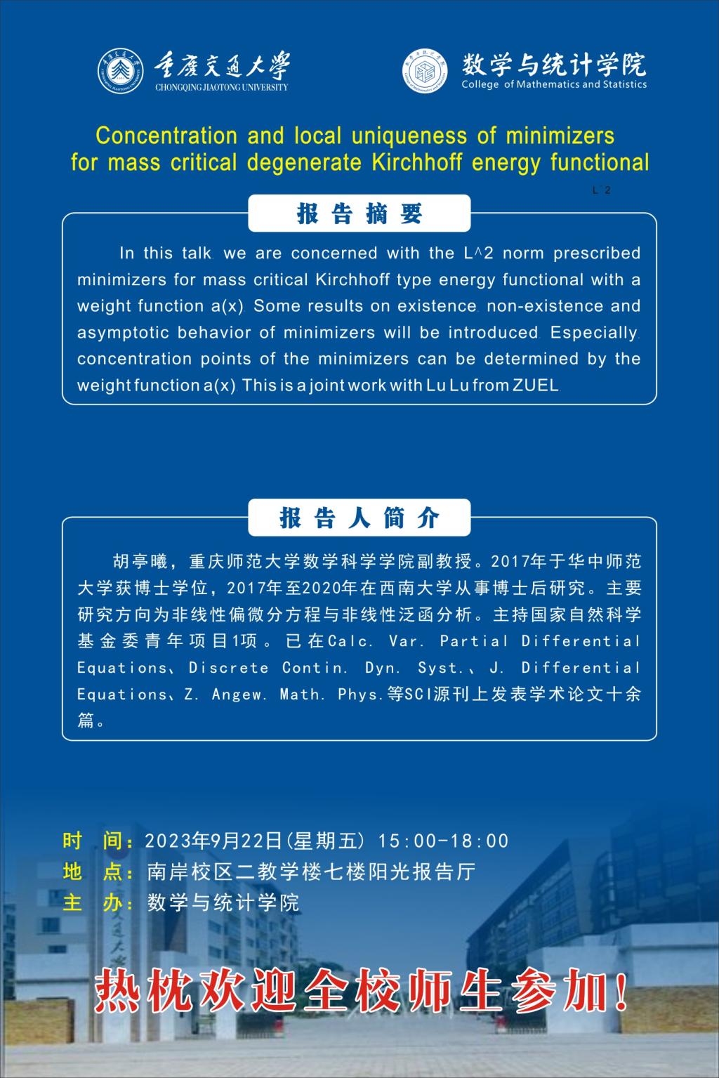 学术报告:Concentration and local uniqueness of minimizers for mass critical degenerate Kirchhoff energy functional