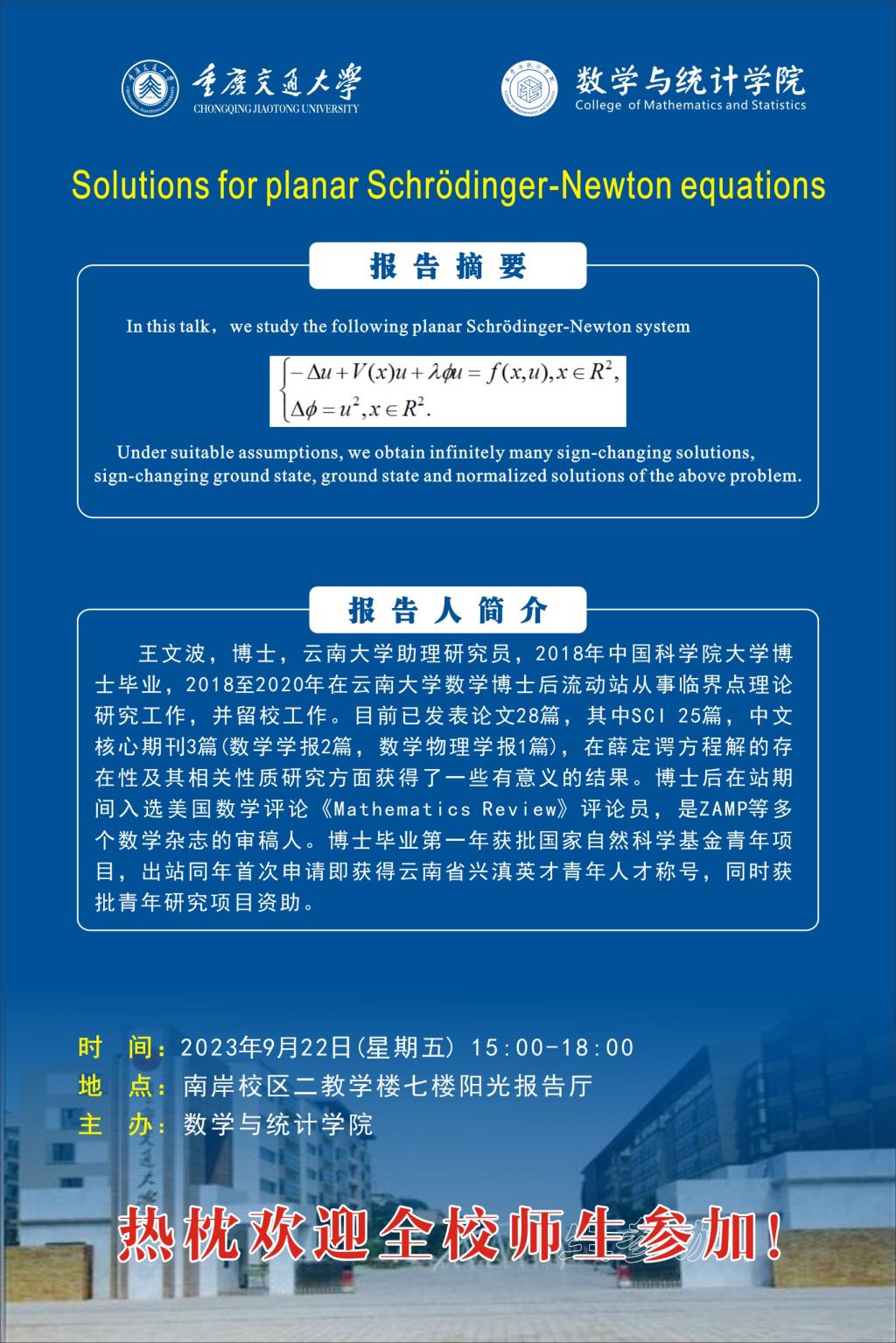 学术报告:Solutions for planar Schrödinger-Newton equations