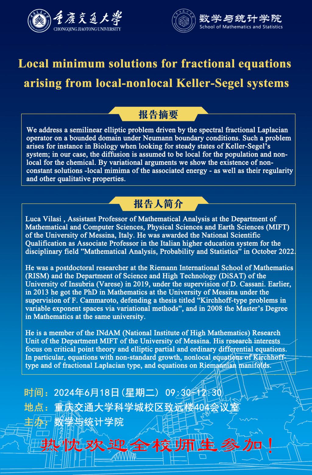 学术报告:Local minimum solutions for fractional equations arising from local-nonlocal Keller-Segel systems
