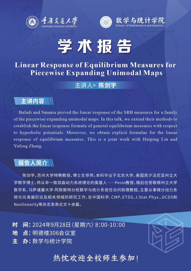 学术报告:Linear Response of Equilibrium Measures for Piecewise Expanding Unimodal Maps
