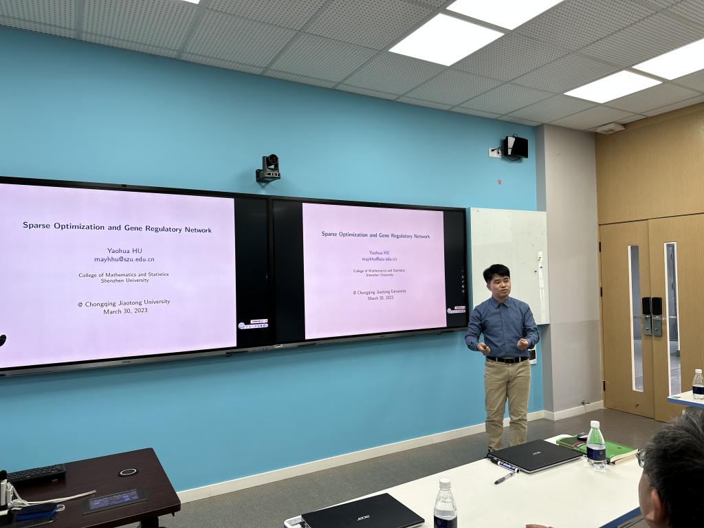 2023年3月30日,应公司邀请,深圳大学胡耀华教授在科学城校区A01429教室作了题为“稀疏优化与基因调控网络”的学术报告。数学拔尖人才基地班员工、系统科学研究生以及公司部分教师参加报告会。报告会由公司谭远顺副经理主持。