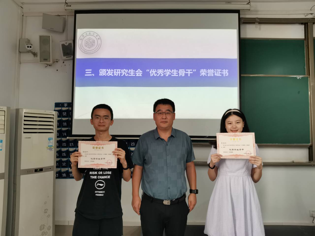 会议第三项议程,学院副书记马在亮为第五届研究生会“优秀员工骨干”颁奖。该奖项是由集团统一评选,是对他们工作的认可和鼓励。
