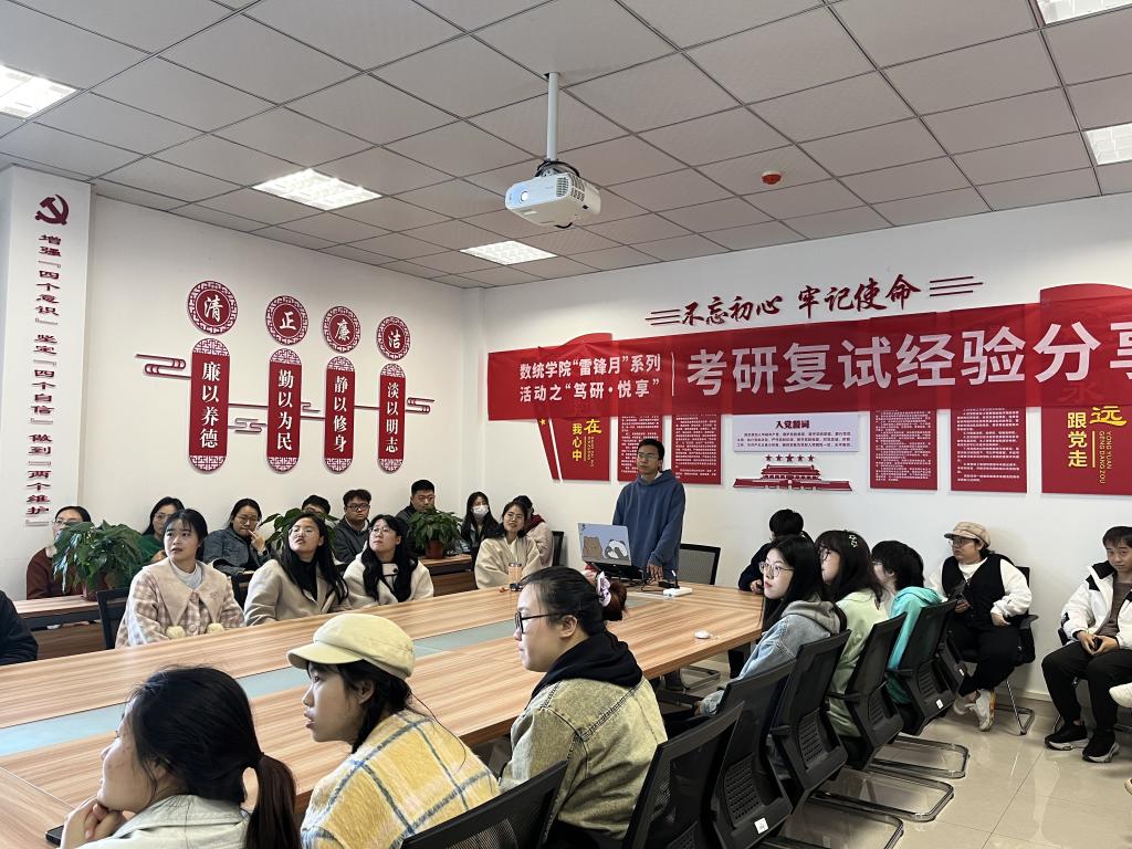 分享会现场氛围热烈,互动频繁,与会同学纷纷表示收获颇丰。本次活动不仅为考研员工提供了实用的复试经验和技巧,还为同学们提供了交流经验、互相学习的机会。“奉献、友爱、互助、进步”的雷锋精神在此次活动中得到了充分展现。雷锋精神,人人可学,处处可为。春风化雨,数统学子将以实际行动践行和传承雷锋精神。
