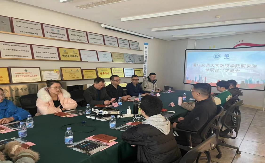 重庆翰海睿智大数据科技股份有限公司副总经理雷悦、市场经理赵颖萍,sunbet学科办主任彭再云、实验教学中心主任蒋伟、数学与应用数学系副主任陈晓丰三位老师带领着12名系统科学研究生进行了参观实习,双方就系统科学员工实习方式、实习内容以及培养基地建设事宜进行了深入交流和研讨。