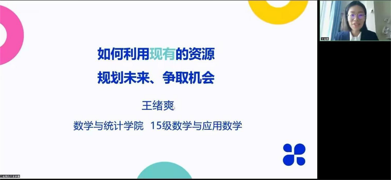 最后,王绪爽就“权衡和规划”、“兴趣和生计”、“投入和收益”、“家庭期望”等话题进行了深入交流。她告诉同学们“人生是一场动态规划,选择是运筹学博弈论,但努力会像微积分,一定会有回报对的一天”。