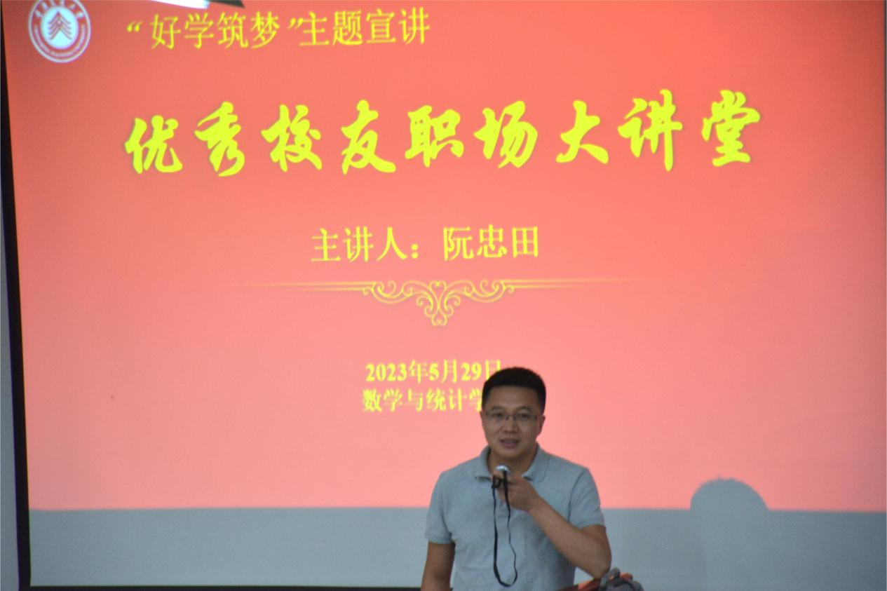 为深入实施公司“好学近知”行动计划,开展好“好学筑梦”主题宣讲,助力学子明确职业方向,规划未来职业路径,sunbet于5月29日晚在A01438教室举办了一场职业大讲堂,邀请公司2009届数学与应用数学专业毕业生——浪潮云重庆中心副总经理阮忠田担任主讲老师。公司全体大三员工及2021级辅导员张颜参加。讲座由公司党委副书记马在亮主持。