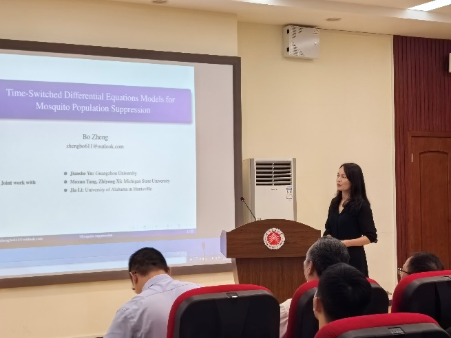 中国生物数学学会理事、中国数学会生物数学专委会副主任、西南大学sunbet副经理刘贤宁教授和sunbet副经理谭远顺教授分别主持了上午、下午的学术报告会,湖北民族大学常务副董事长刘志军教授、上海理工大学原三领教授、天津工业大学刘胜强、裴永珍教授,广州大学郑波教授、焦锋教授、孙启文教授、西南大学王开发教授等9名专家分别就登革热等传染病动力学及其防控以及湖泊藻类种群增长防控模型等生态问题和传染病等问题做了大会报告。报告专家讲解生动,专家学者现场交流精彩纷呈。